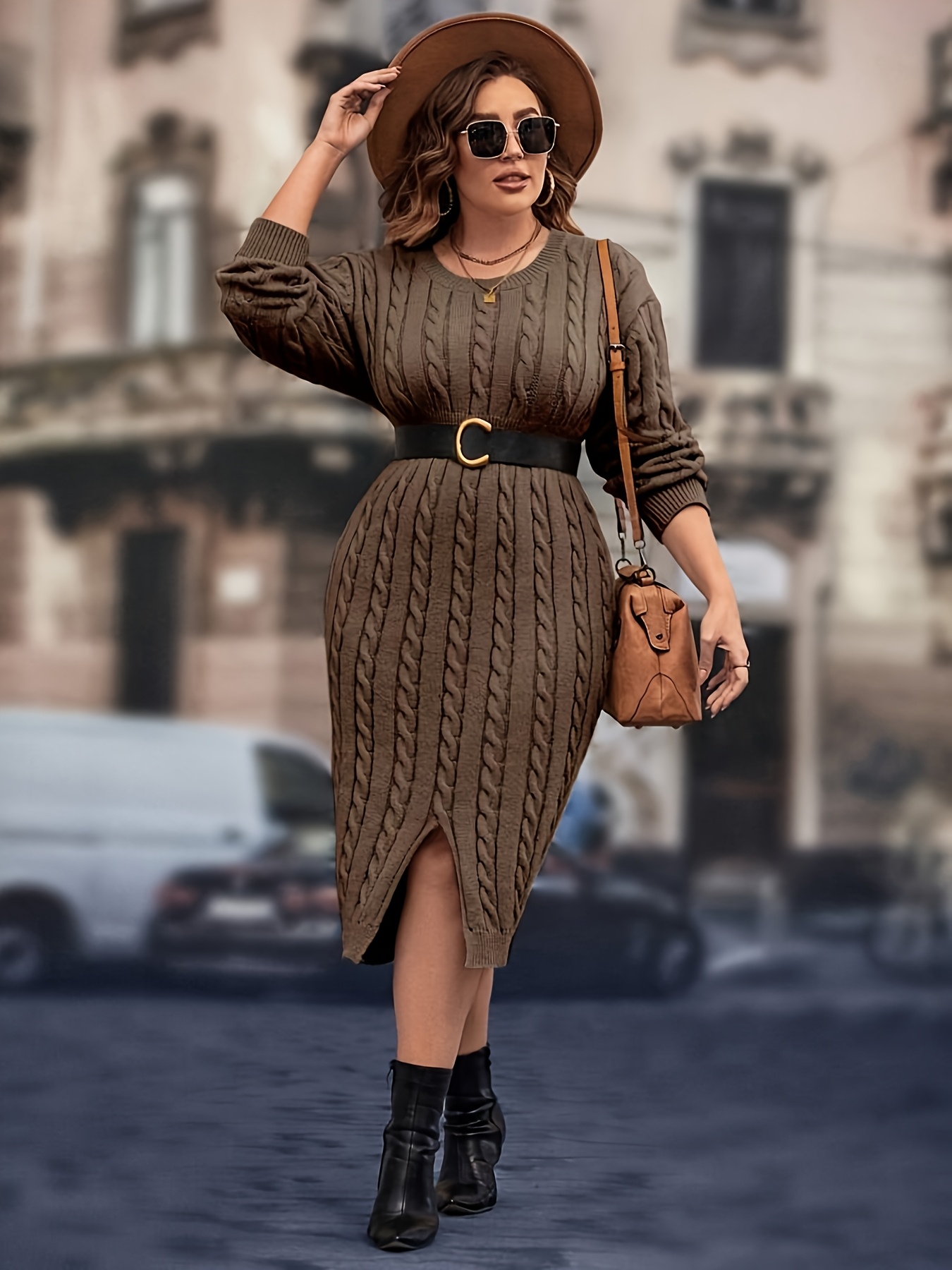 Plus Size - Elegant Plus Size Women'S Bodycon Dress - Fabric, Long Sleeve, Crew Neck, Slim Fit, Solid Color, Perfect for Spring/Summer, Ideal for Halloween, Christmas, Valentine'S Day Gifts, Casual Wear Dress|Slim Fit Dress| Construction, Plus Size Dress