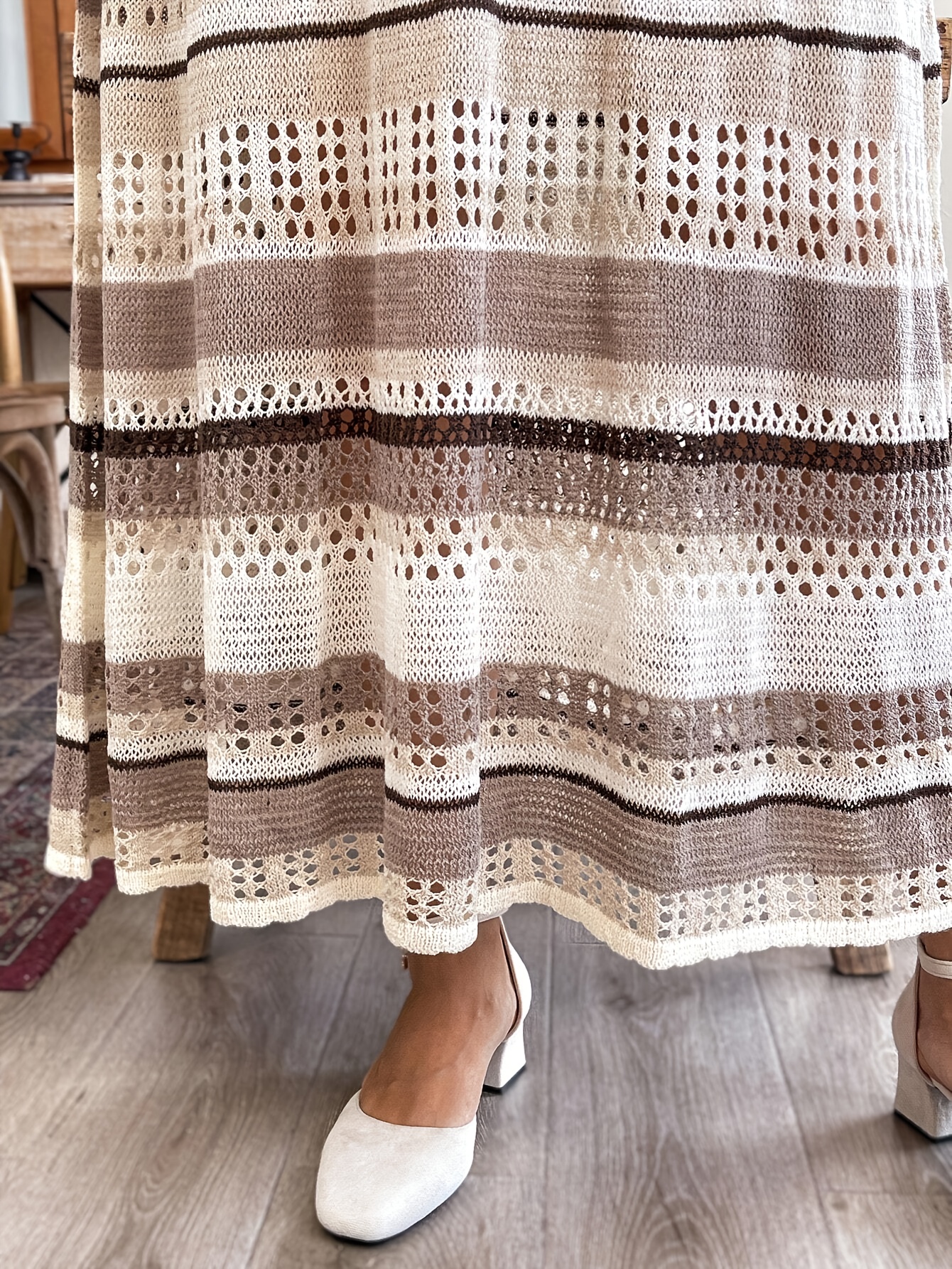 Plus Size - Plus Size - Plus Size - Elegant Plus Size V-Neck Long Sleeve Dress with Color Block Design - Lightweight Breathable Fabric, Ruffled Hem & Layered Skirt