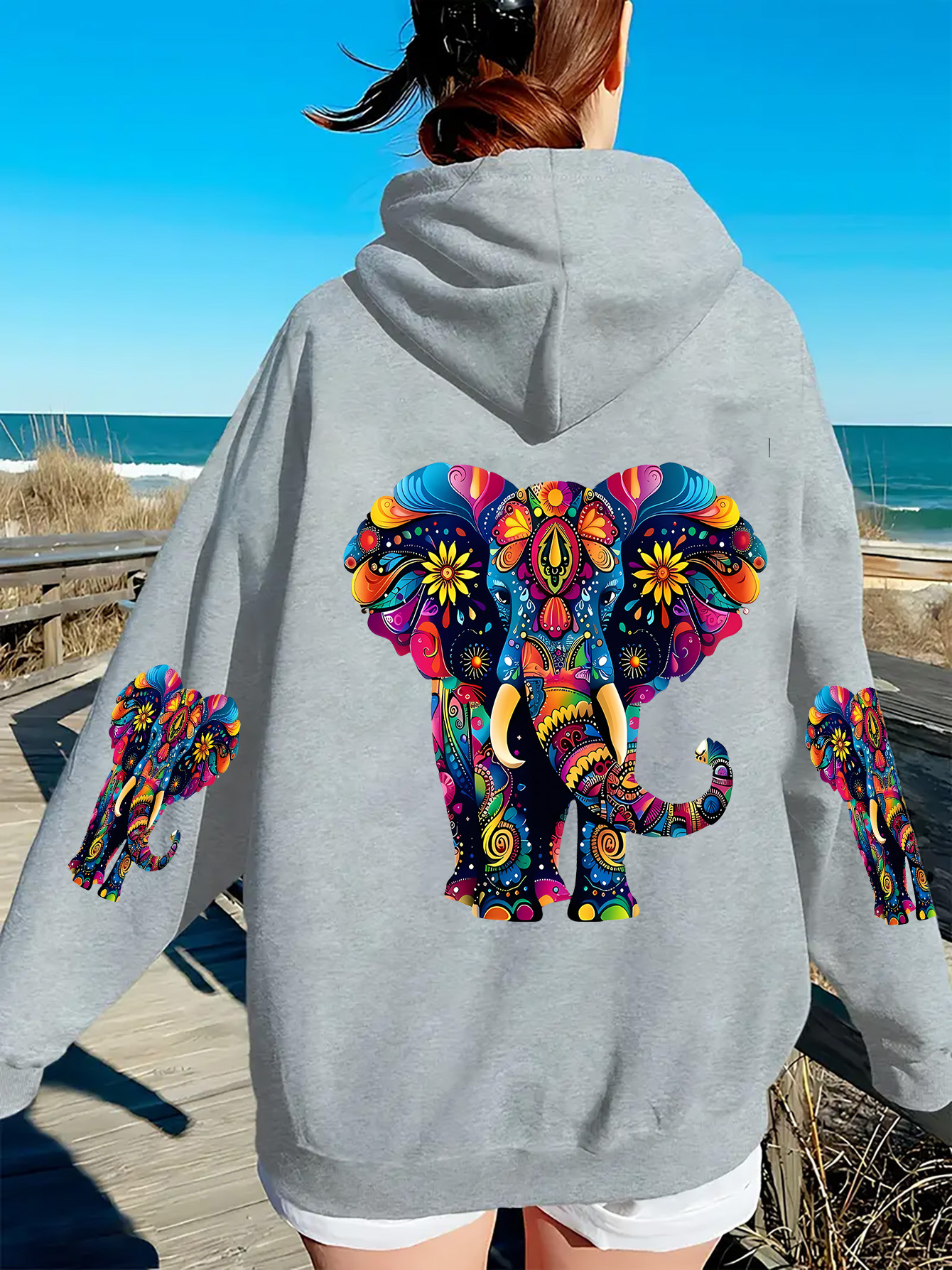 [Vibrant Print Hoodie] Vibrant Print | Women's Elephant Hoodie - Cozy Fleece-Lined Zip-Up Sweatshirt with Front Pocket, Long Sleeve Pullover for Fall & Winter | Durable Casualwear