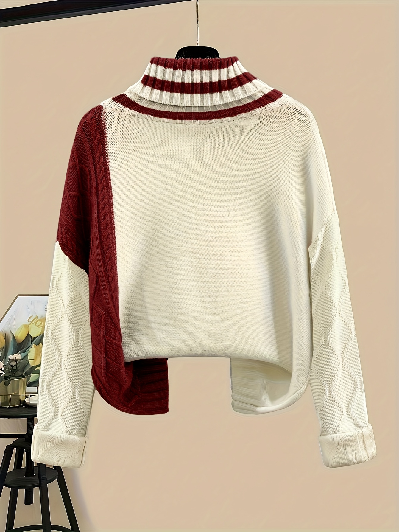 Plus Size, Women's Two-Piece Set, Fashionable and Elegant Long Sleeve Pullover with Skirt in Color Block Design for Autumn/ Winter