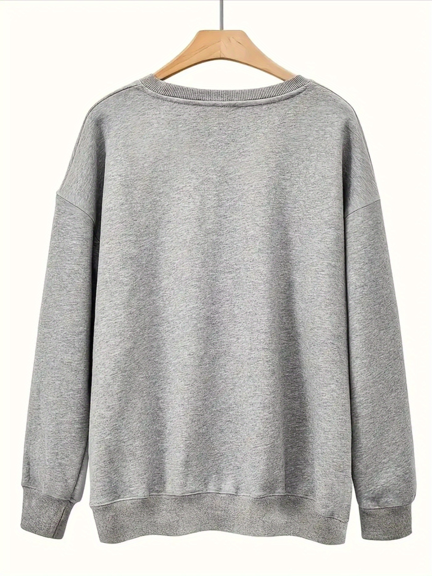 [Cozy Letter Print Sweatshirt] Cozy Plus Size Women's AMAZING GRACE Letter Print Sweatshirt | Long Sleeve Crewneck Pullover with Floral Accents, Machine Washable Polyester, Relaxed Fit for Fall & Winter Casual Wear, Cute Sweatshirts