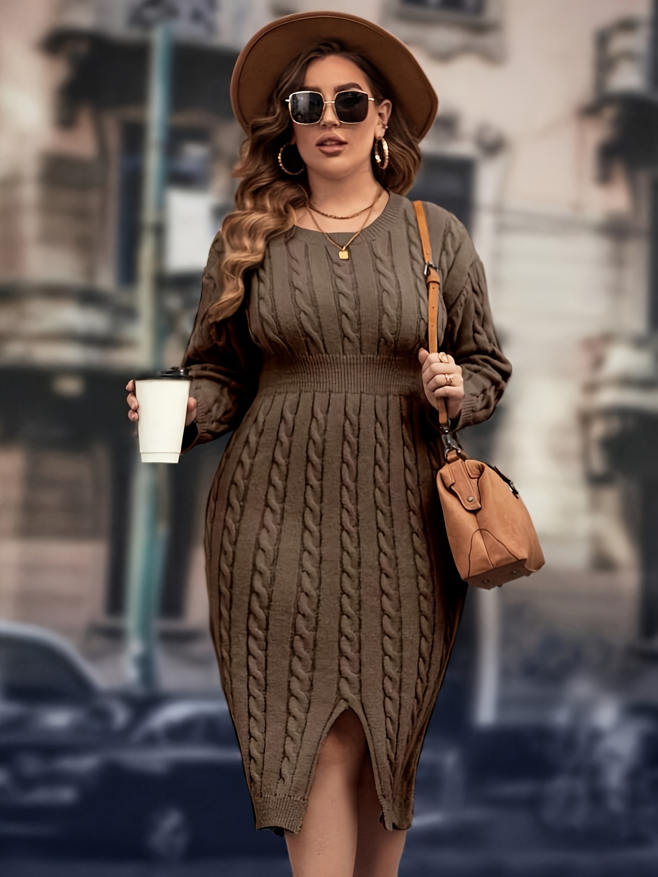 Plus Size - Elegant Plus Size Women'S Bodycon Dress - Fabric, Long Sleeve, Crew Neck, Slim Fit, Solid Color, Perfect for Spring/Summer, Ideal for Halloween, Christmas, Valentine'S Day Gifts, Casual Wear Dress|Slim Fit Dress| Construction, Plus Size Dress