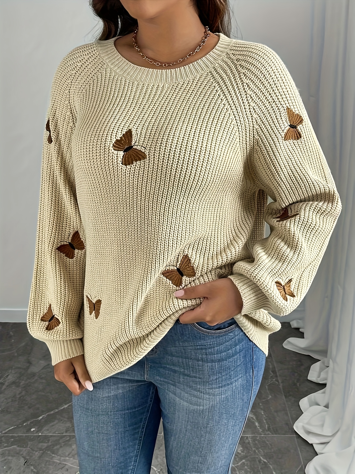 Plus Size - Plus Size - Plus Size Women'S Sweater - Cozy Long Sleeve Pullover with Pattern, Soft Stretchy Fabric, Casual Crew Neck Top for Spring/Fall, Casual Wear Sweater, |casual Style Sweater|stretchy Fabric Sweater
